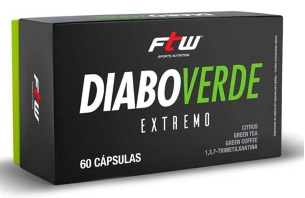 Diabo Verde FTW é um suplemento de Cafeína 420mg associado ao Café Verde, Café Verde e Citrus Aurantium, que juntos promovem máximo desempenho para atletas em seus treinamentos. Possui ação termogênica e lipolítica. Seu uso deve estar associado à atividade física intensa.
